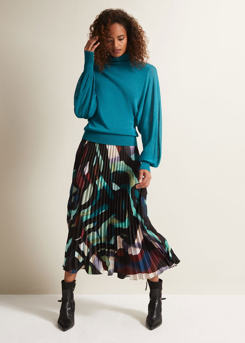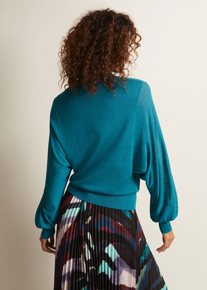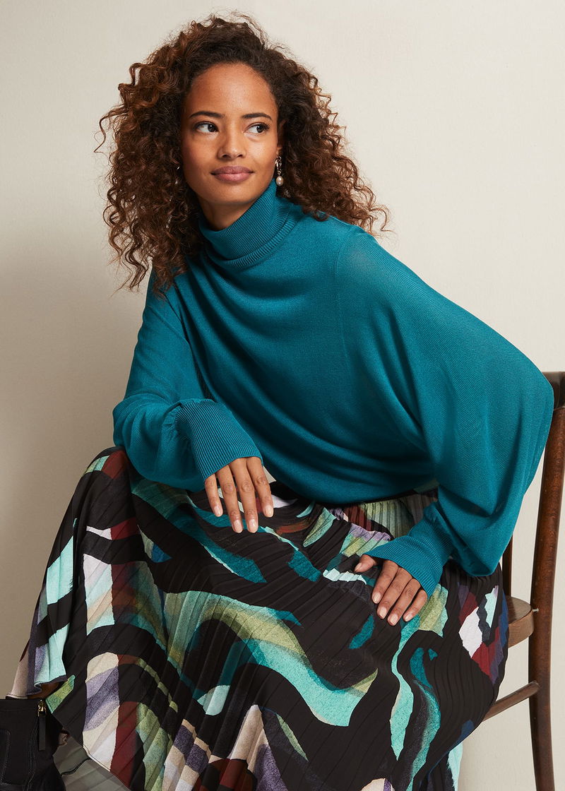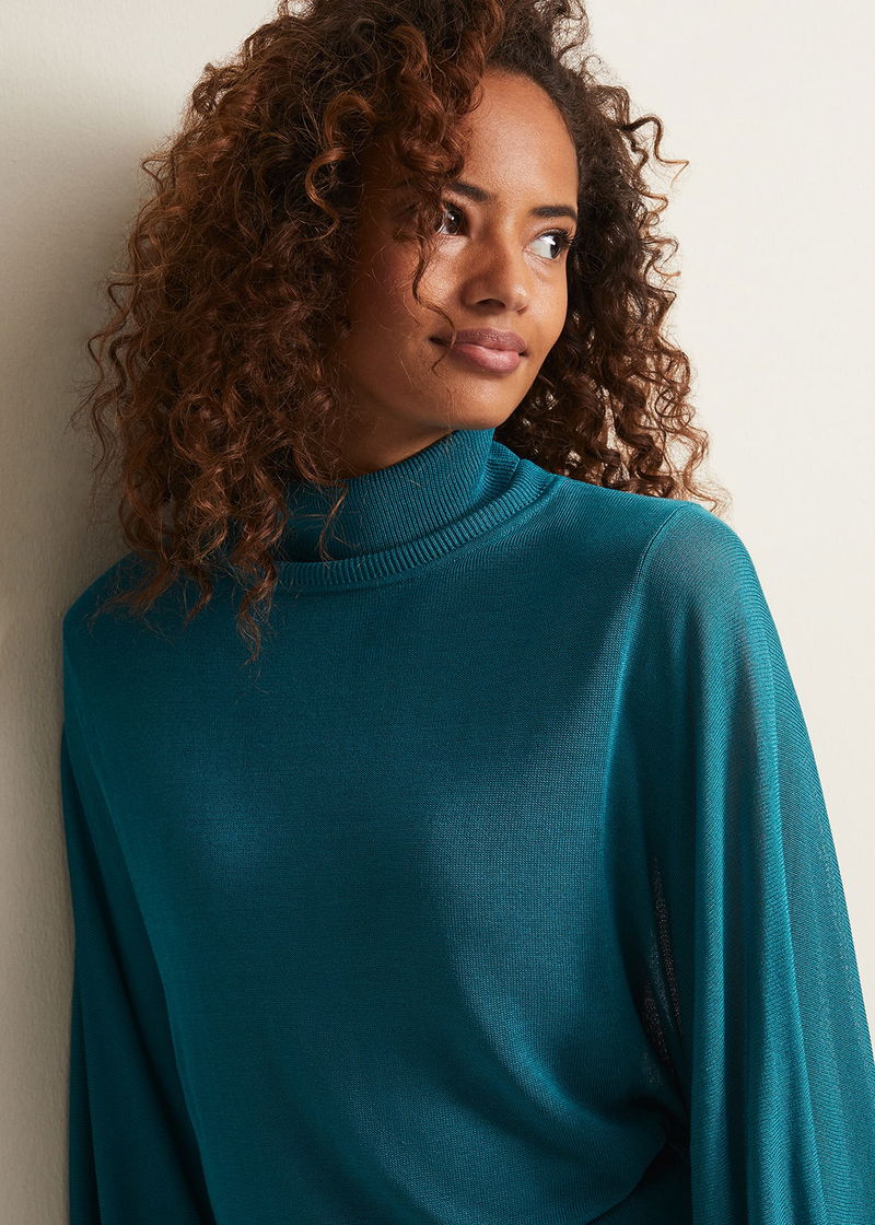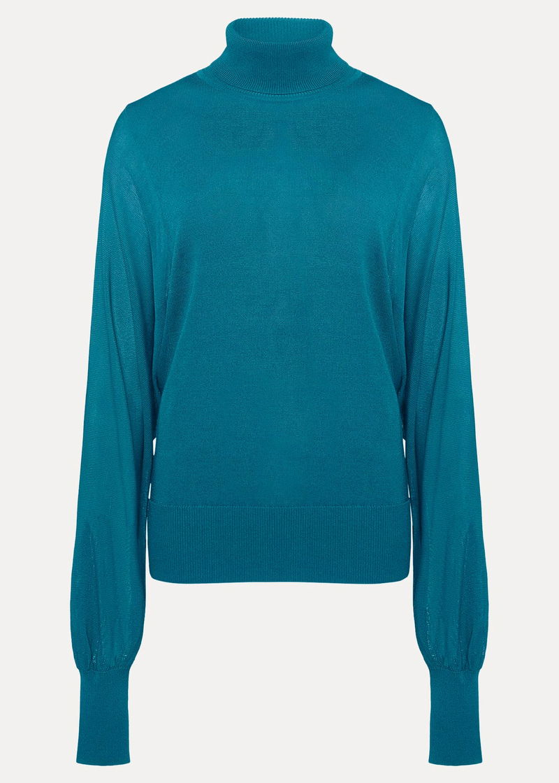 A new shade to add to your everyday wardrobe. Designed in a teal shade, the Loletta top features a turtle neck, long blouson sleeves and is cut to a relaxed fit.