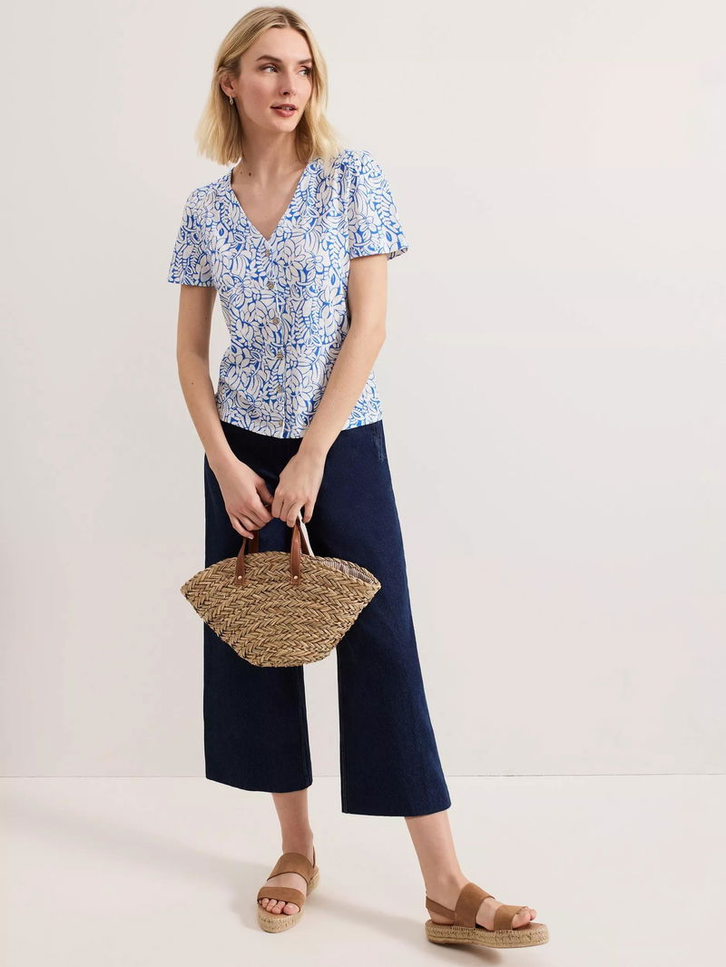 Detailed with a classic V-neckline and contrasting buttons it offers an effortless everyday aesthetic to pair with your favourite trousers or jeans.