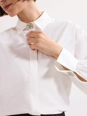 One to add to your capsule wardrobe. Cut from comfortable 100% BCI cotton, this top features a feminine V-neckline and button down detailing, as well as short, airy sleeves. We'll be wearing this with all of our separates.