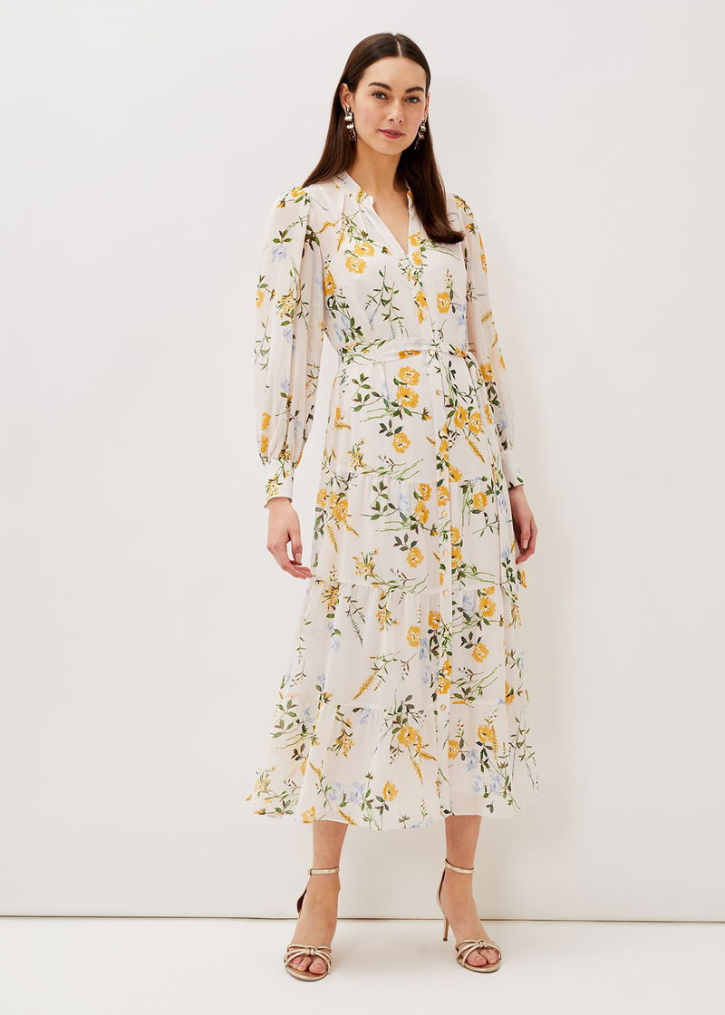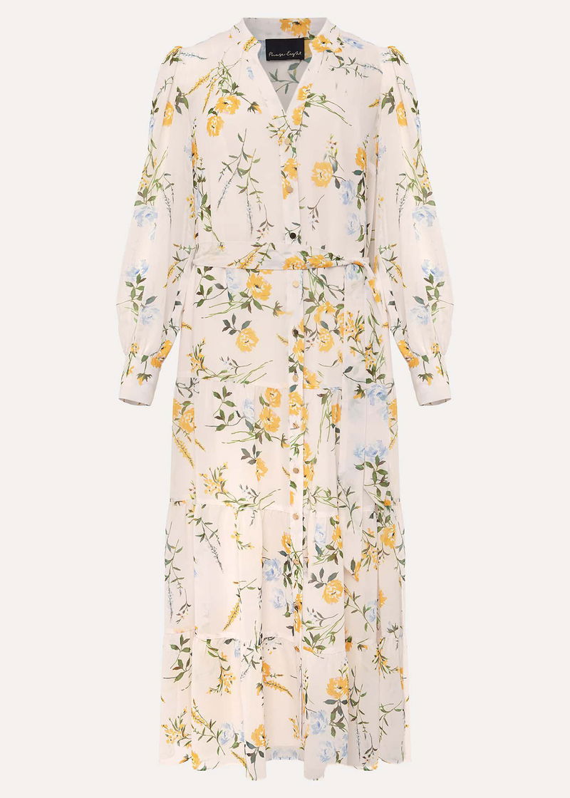 Printed throughout with a feminine floral print, the Lucie Shirt Dress is guaranteed to turn heads at your next events. Designed with long semi-sheer sleeves and soft pleating through the skirt, this midaxi is a timeless style you'll wear again and again.