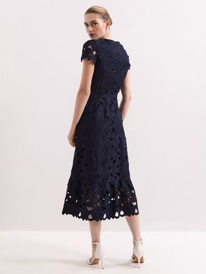 Timeless and minimal, this lace midi dress makes for an effortlessly stylish look. In a gorgeous shade that will work throughout the year, it features feminine details such as ruched short sleeves for subtle volume. The timeless shirt silhouette falls to a midi length that is flattering and easy to style, simply add pared matching accessories and you're ready to go.