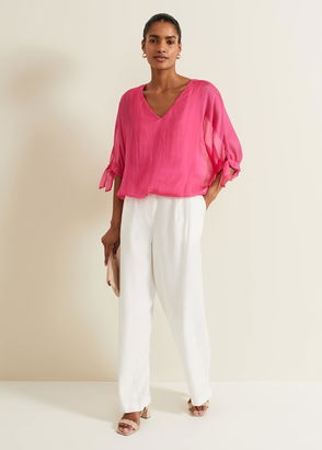 A luxuriously versatile style to add to your wardrobe. The 100% silk blouse features semi-sheer sleeves, finished with an elegant bow detail for a feminine edge. Simply style with your favourite trousers and shoes for a look that you can dress up or down for any occasion.