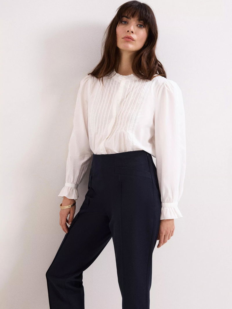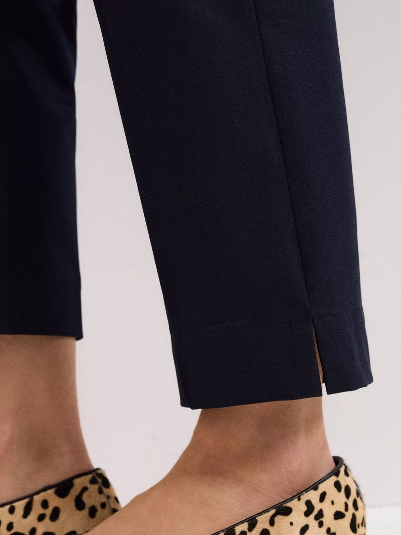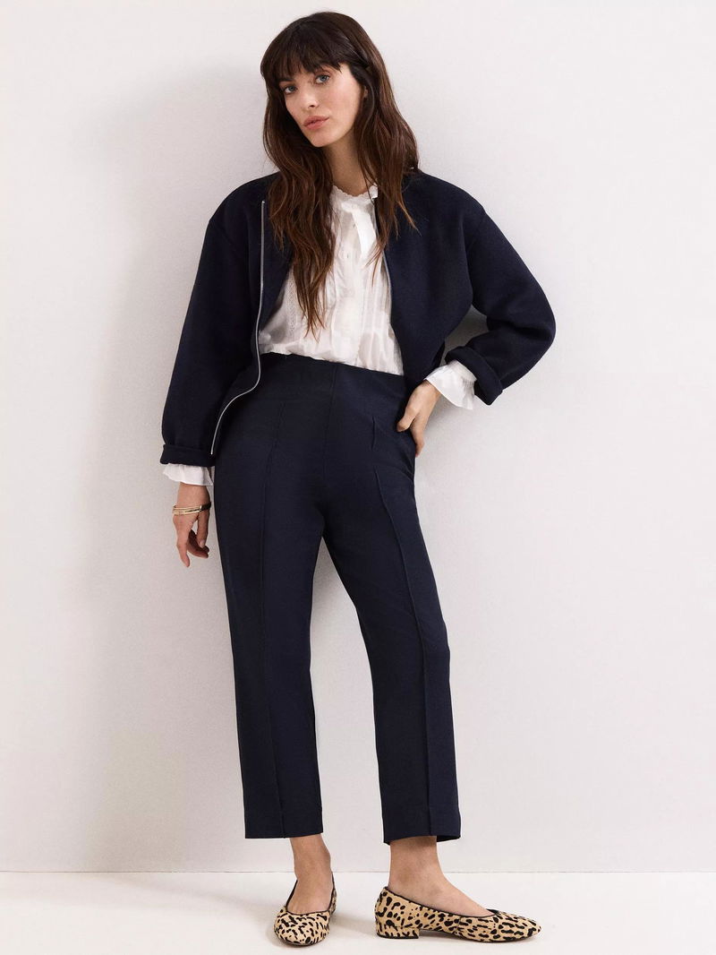 In a precise cut that skims, not clings, a pair of slim-leg trousers by Phase Eight with a cotton blended base. They sit mid rise with a concealed zip and a neatly cropped length.