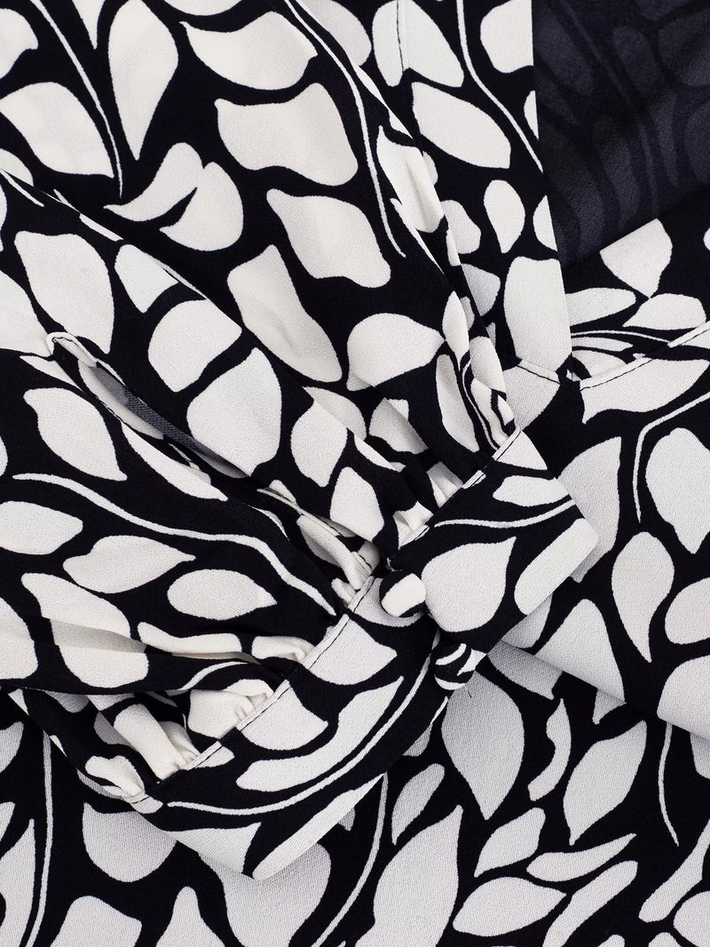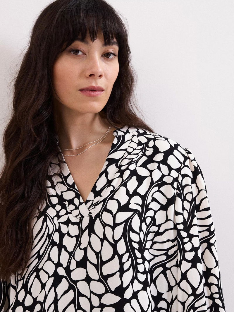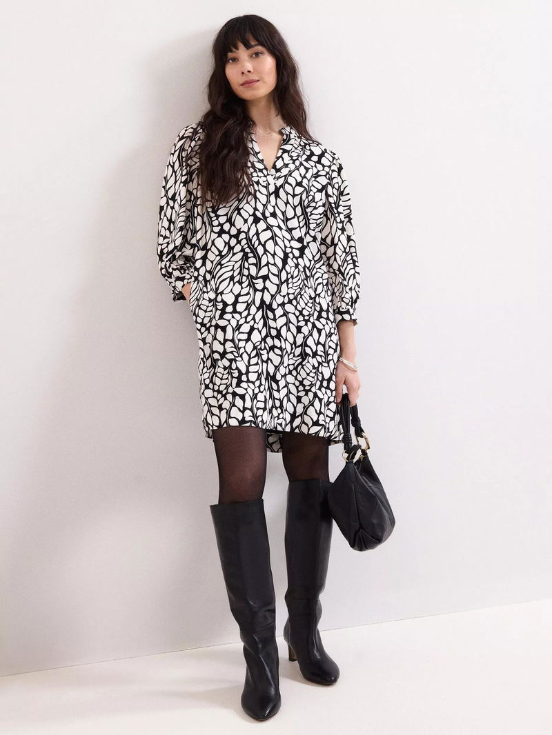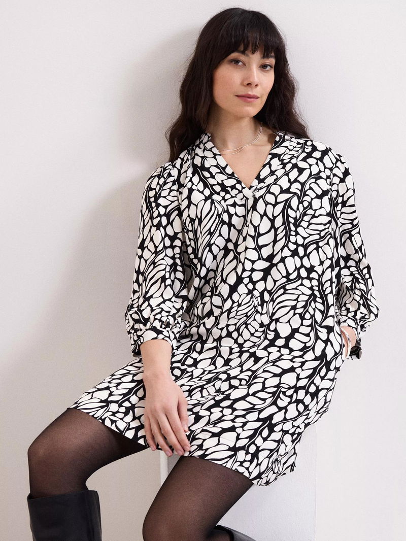 Milicia Leaf Print Tunic Dress, Black/Ivory