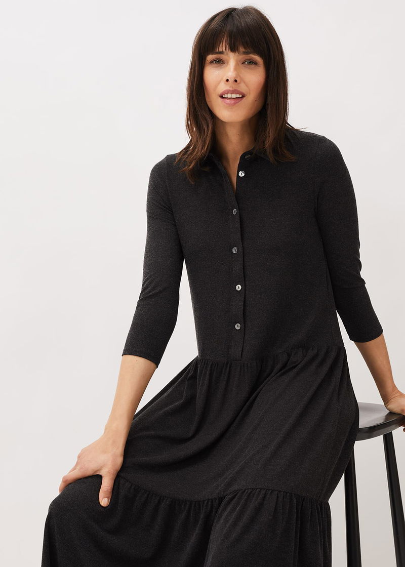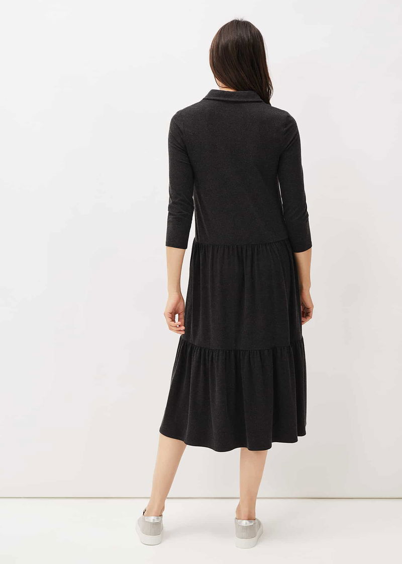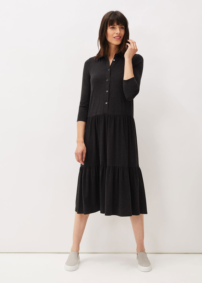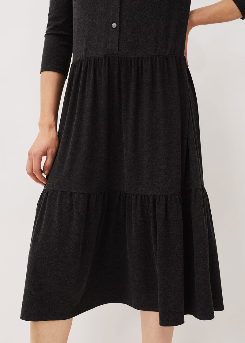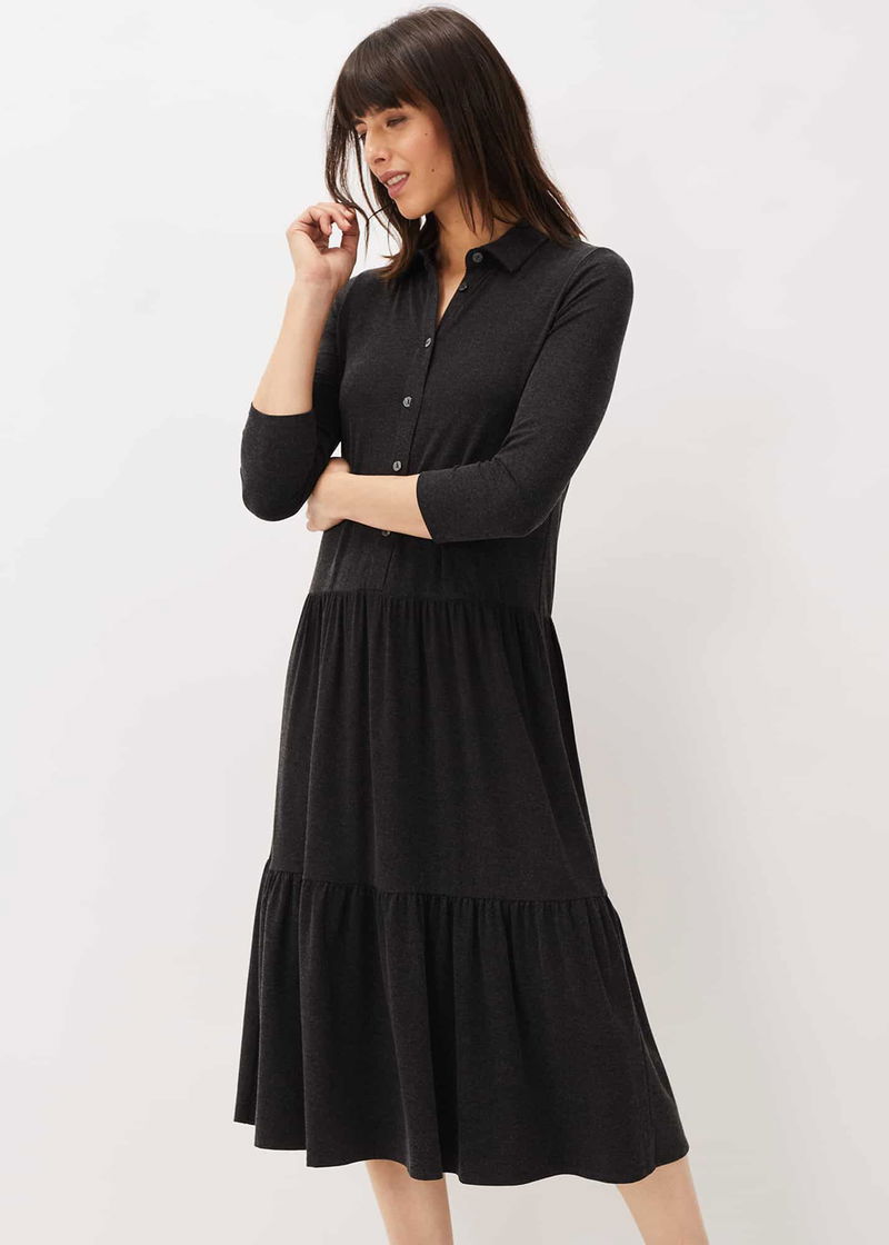 Your new every day little black dress, meet Mina. Designed in a relaxed and super soft jersey fabric, this midi style features a tiered skirt, button through bodice and 3/4 length sleeves.