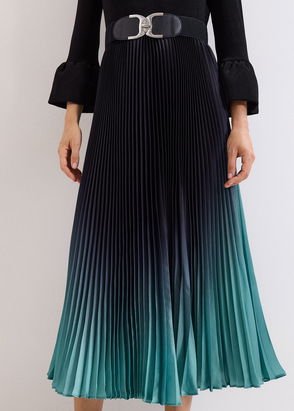 Meet the Mira dress, a standout occasion style that is guaranteed to turn heads. Featuring a striking ombre design, this midi dress is fully pleated throughout for maximum effect and flowing movement. Finished with button-down detailing on the bodice and a contemporary chain belt, it styles effortlessly with matching gold accessories for a coordinated event look.