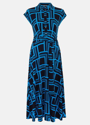 The print of the season. Designed in a vibrant geometric print, the Montana dress features a classic collar, button down detailing and a tie belt at the waist. Its shirt style and mini length skirt means it can be worn Monday-to-Sunday with tights and boots or heels to take you from work to the weekend.