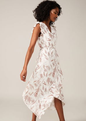Exuding refined sophistication, this monochrome floral midi dress is designed in soft pleated fabric with a shirt-style collar with hidden buttons running down to the waist. With subtle balloon sleeves and a tie belt for shape, this dress will take you effortlessly from the office to the weekend.