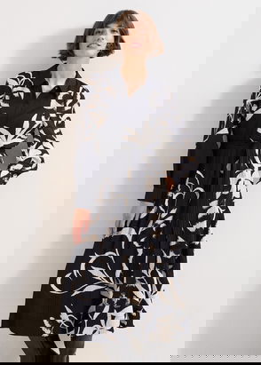 Meet your new go to dress. Designed on a navy base with white hand-painted florals, our Natalie dress features a belt to accentuate your waist and falls to a versatile midi length. Simply dress up with heels or down with boots.