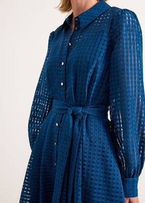 Meet your new favourite dress. In a timeless shirt silhouette, our vibrant purple Natalie dress features a unique check texture that infuses a contemporary touch. The tie belt highlights the waist before falling to a voluminous midi skirt. Style with your favourite black boots for a sophisticated style for work or weekends.