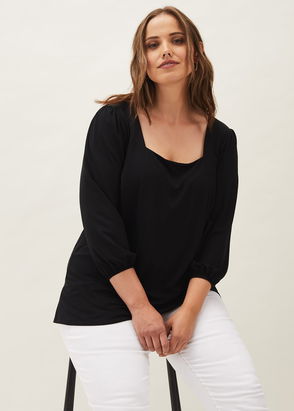 Our Nettie top showcases a classic stripe print offset by a modern square neckline. A keyhole drawstring detail at the hem adds interest and finishes the look.