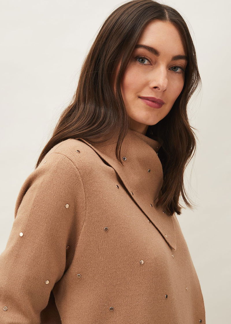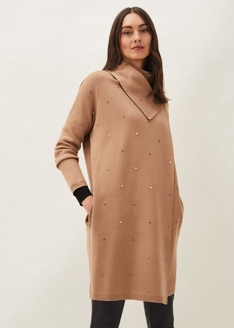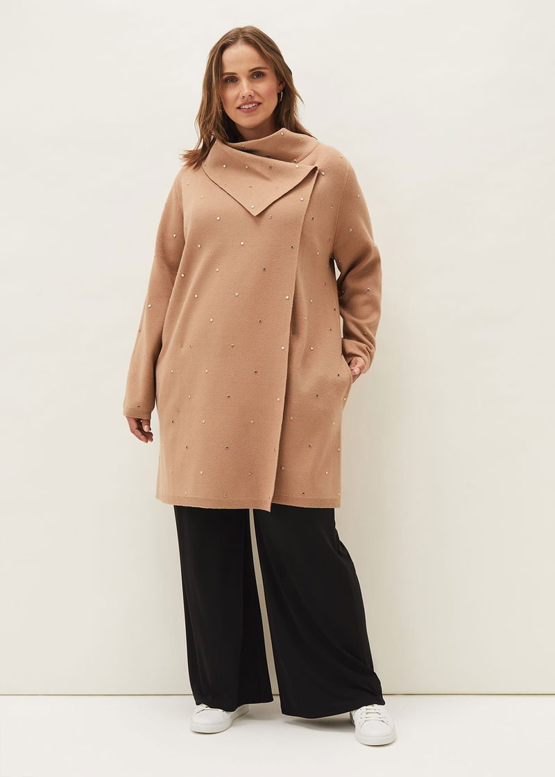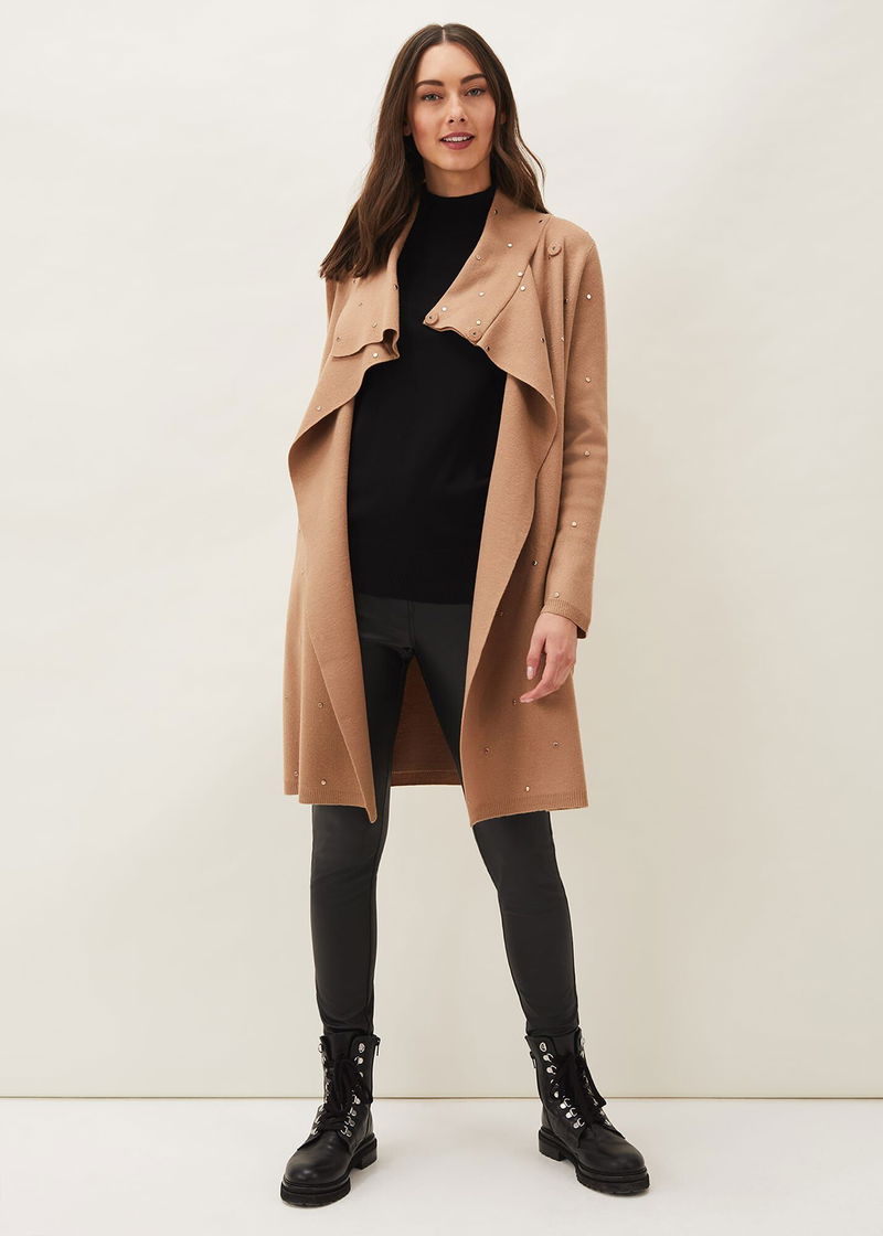 A modern scattered stud design adds a unique finish to the Paloma coatigan. A lighter alternative to a coat but still offer plenty of warmth, this wrap style is designed in a feminine silhouette that you won't want to take off.