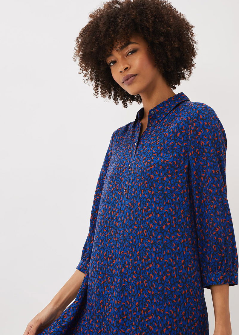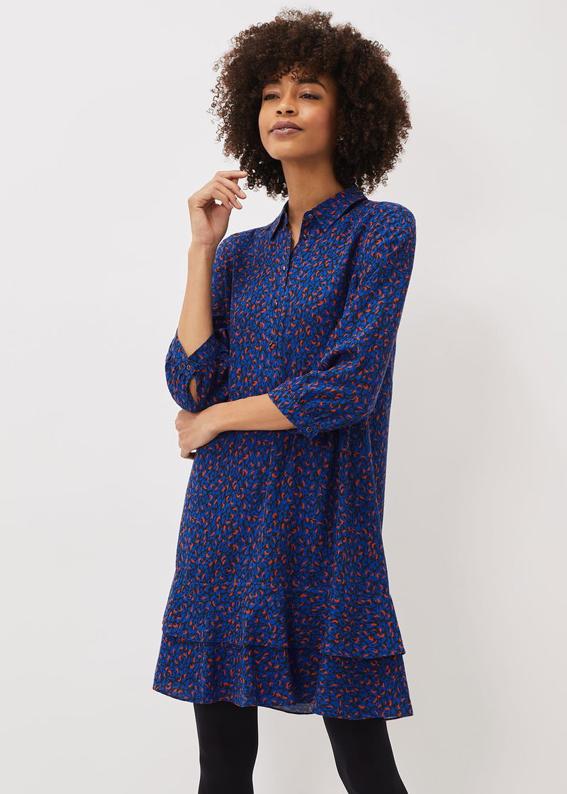 An effortless day dress, designed with an eye-catching animal print, tiered swing silhouette and accented with tiers at the hemline. We're wearing ours with tights and leather boots for an easy seasonal outfit.