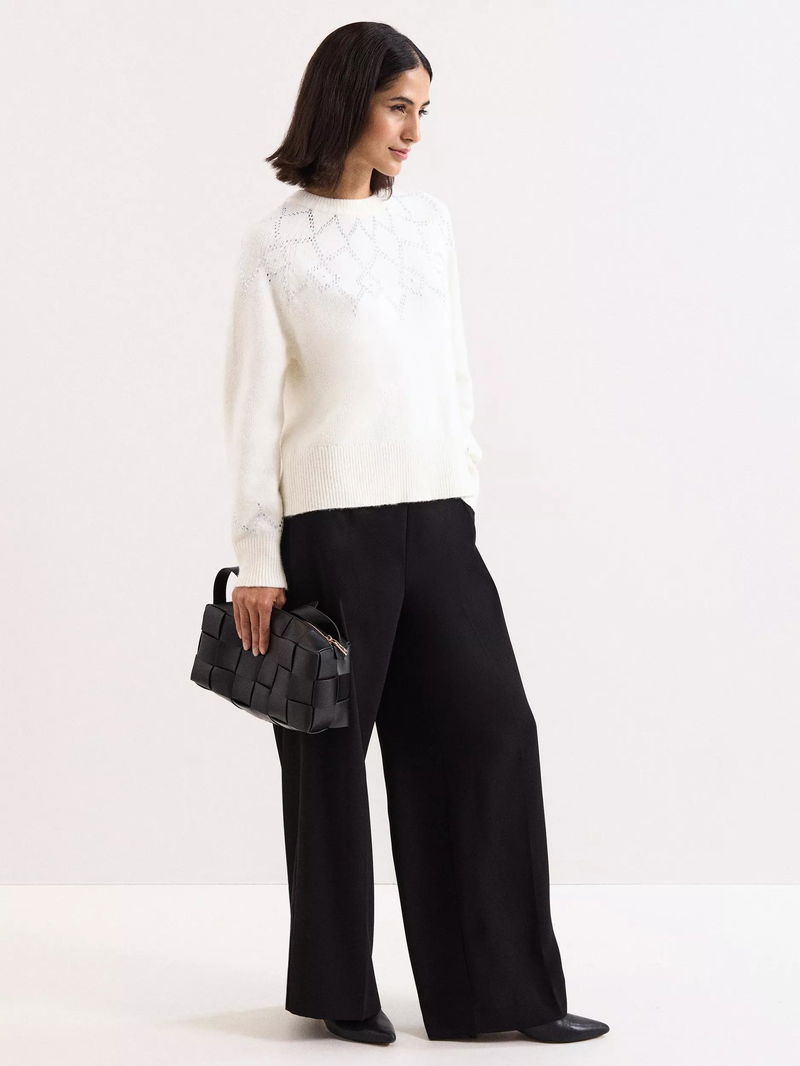 This soft-of-hand knit jumper features a subtle sequin embellishment on the bodice and cuffs, adding a feminine touch to your everyday winter jumper.