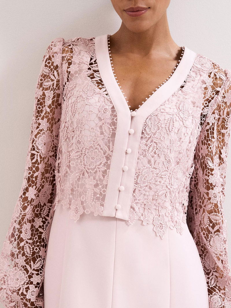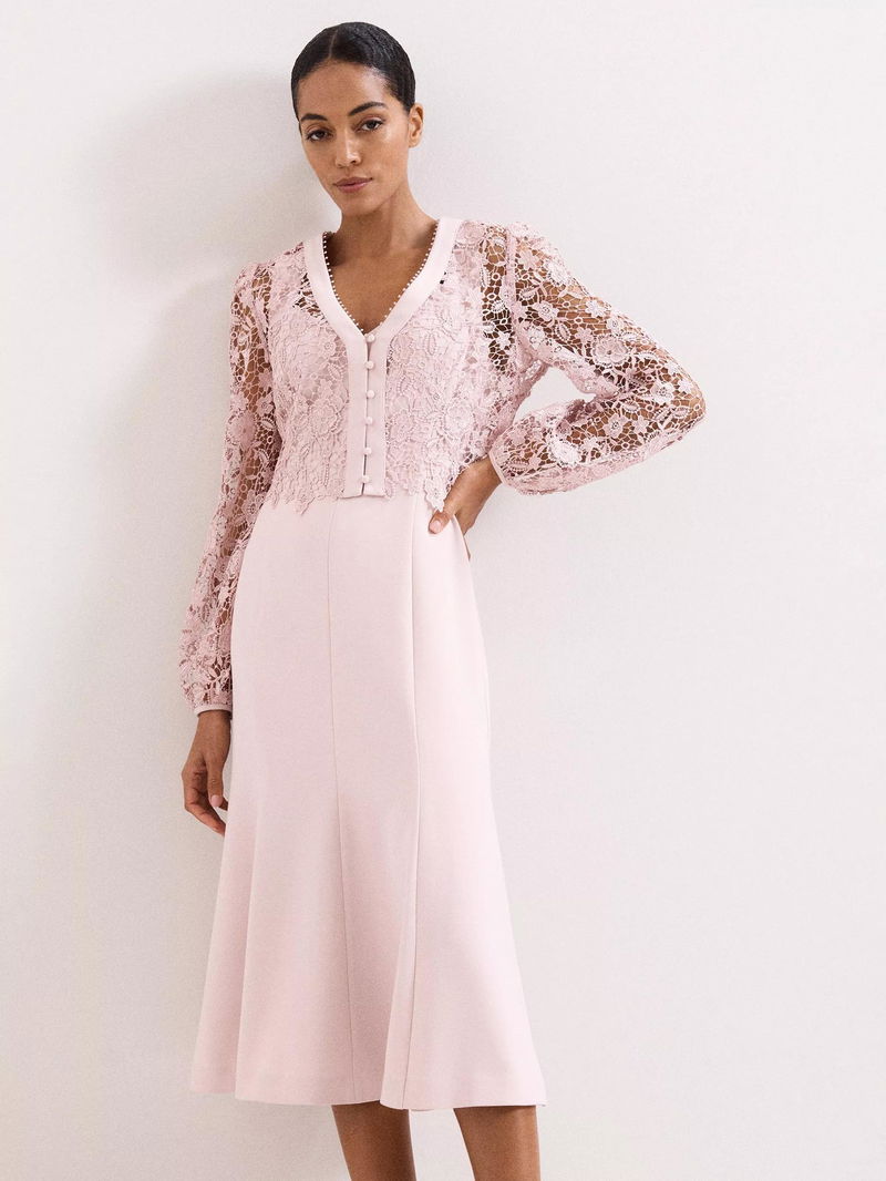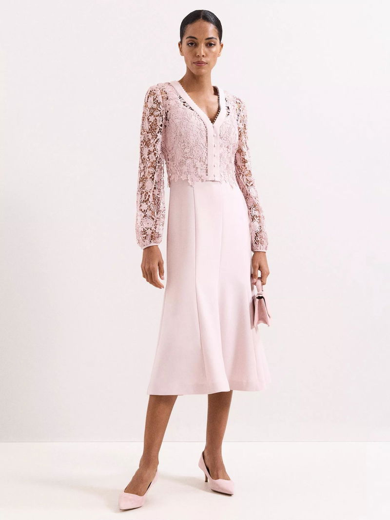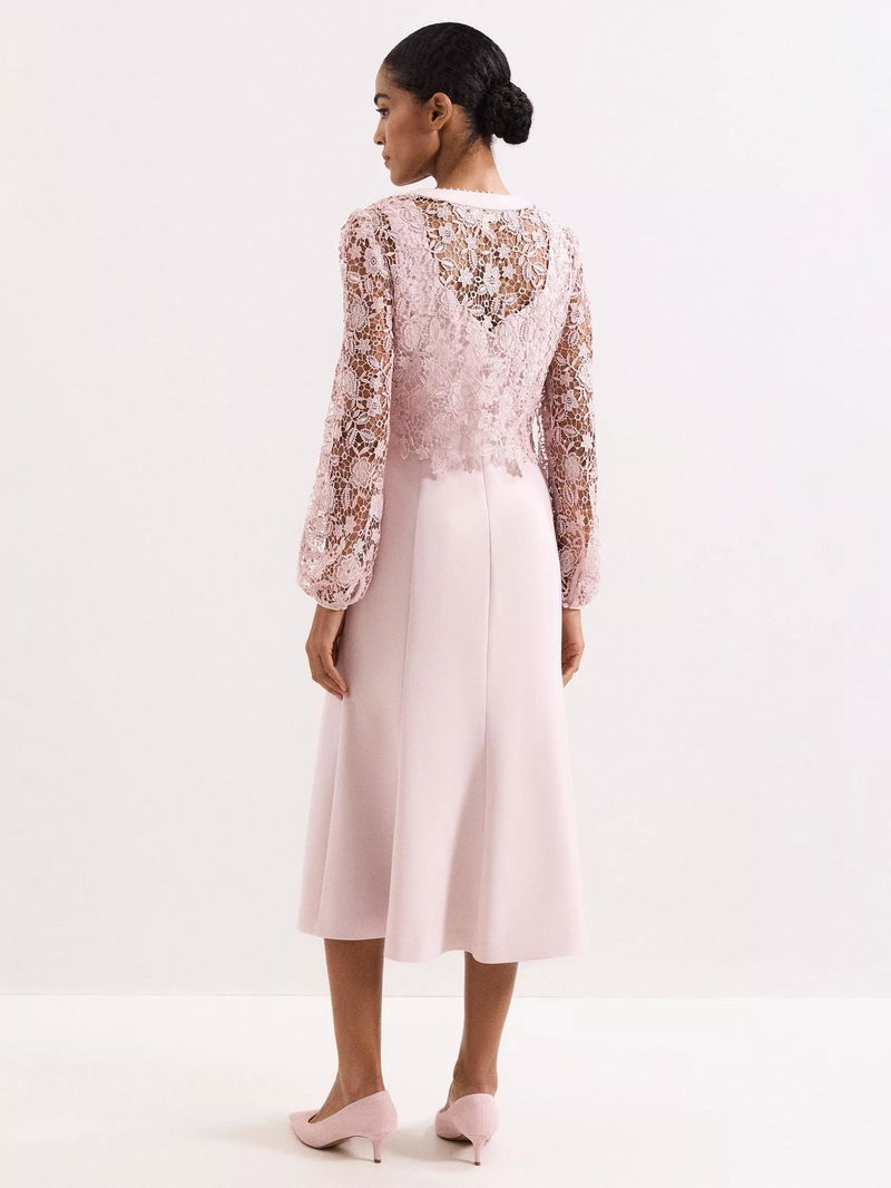 Petite Ayumi Lace Top Midi Dress, Pink