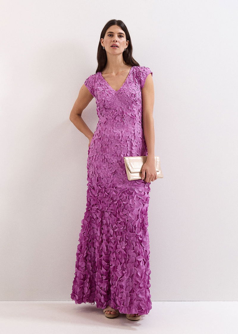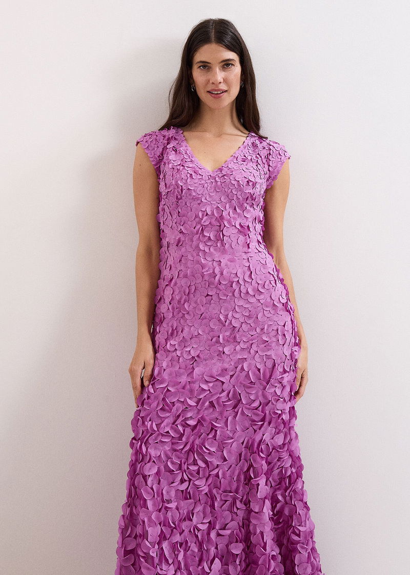 Part of Collection 8, our premium range of evening occasion styles. Designed in a gorgeous maxi silhouette with a modern V neckline and cap sleeves, this purple maxi event dress is adorned with unique beaded embellishments that make this style a standout. Pair with understated accessories to let this statement dress do all the talking at your next event.