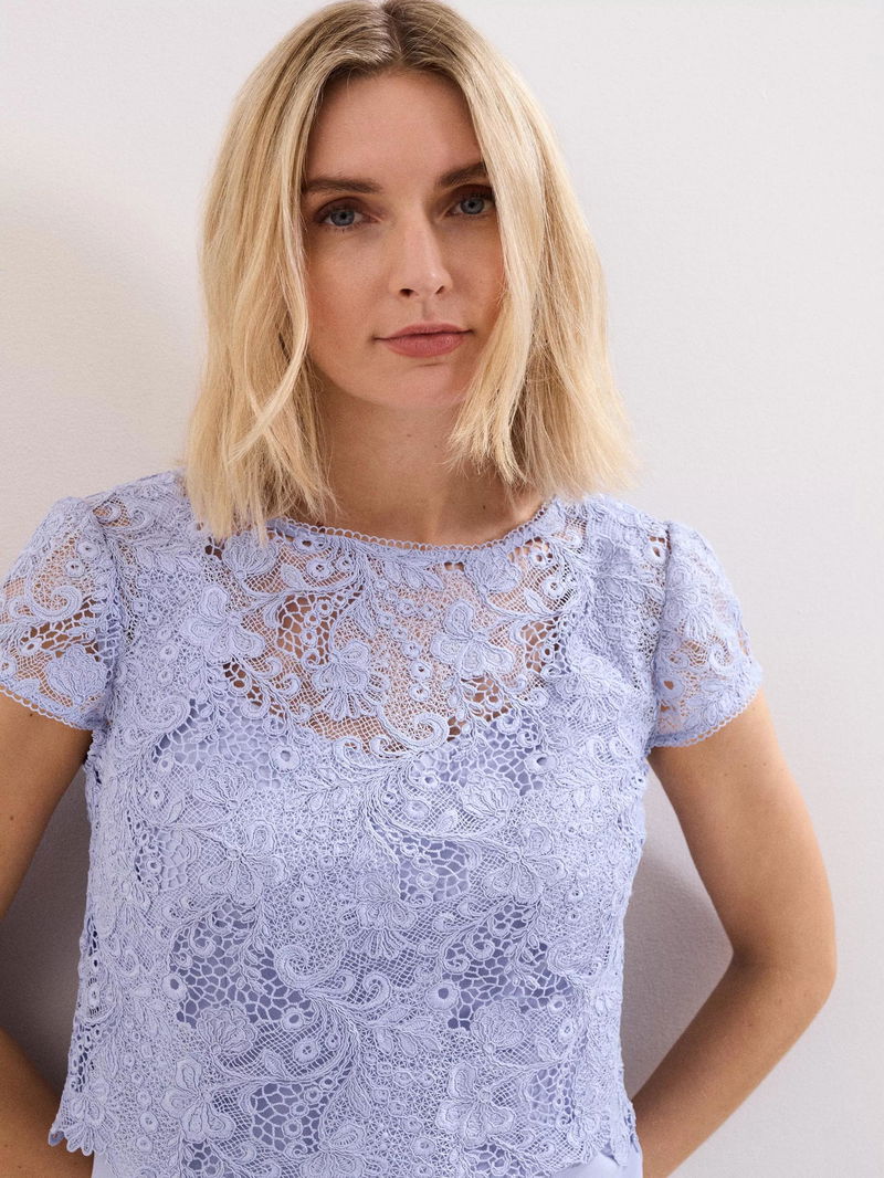 Petite Daisy Lace Bodice Dress, Pale Blue