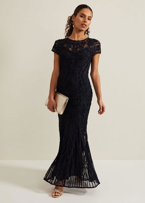 A petite shimmery maxi dress by Phase Eight. With a plisse pleated, textured design, V-neck and semi-sheer voluminous long sleeves, the elegant fit ensures you feel comfortable.