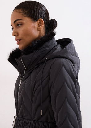 A puffer coat is a staple of the modern wardrobe and the Hollie puffer is no exception. Designed in classic black with a quilted pattern, our coat features a detachable fur collar, large fleece lined pockets, elasticated cuffs and an adjustable belt. The cosy hood and recycled feather and down filling promises to keep you warm on even the coldest days.