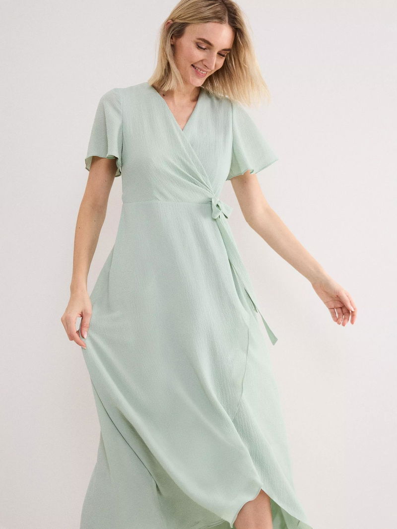 Petite Julissa Textured Wrap Maxi Dress, Pale Green
