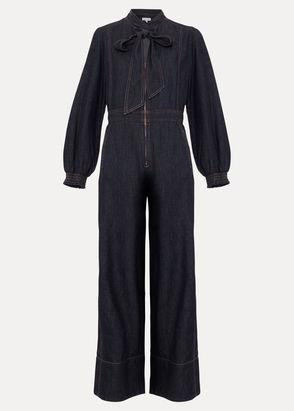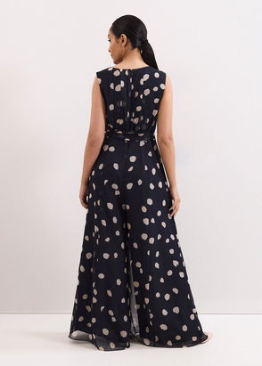 A statement jumpsuit that will wow at your next event. Designed in a gorgeous navy shade, this jumpsuit features a faux wrap bodice, wide covered belt and falls to a pleated, wide-leg silhouette. Wear the Lissia jumpsuit with matching navy heels and a clutch bag for the perfect event-ready look.