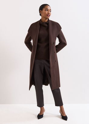 Crafted from a soft, wool-rich blend, this coat is designed to a classic wrap shape and features statement lapels, two front pockets and a waist belt with metal end detailing.