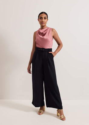 Cut with a draped cowl neck and short sleeves, this petite jumpsuit by Phase Eight is cut to a wide-leg silhouette and is whipped up from a lightweight fabric that's built to last. Updated with a modern colour block design, it's an easy option for casual days about town.