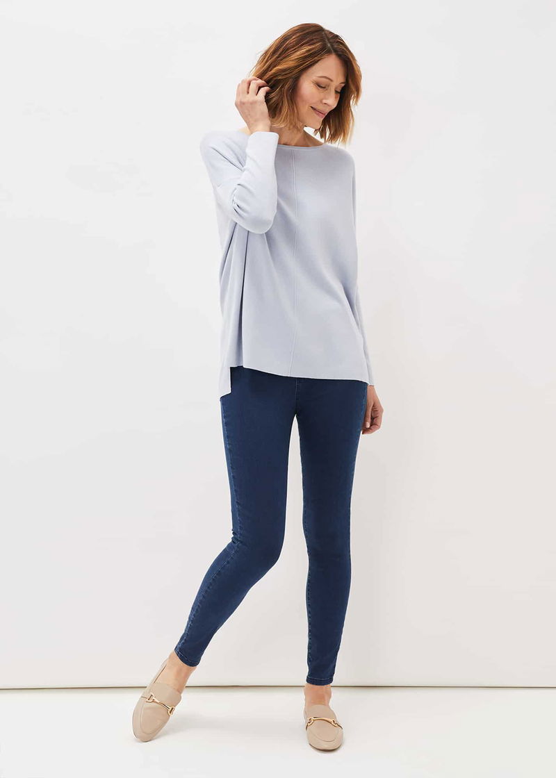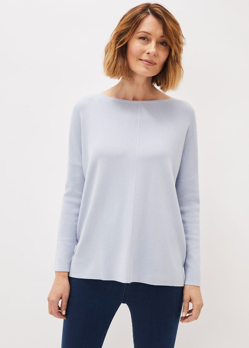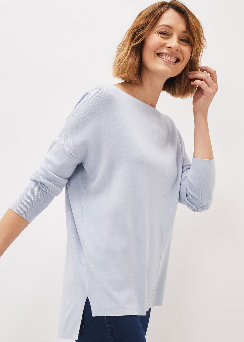 This versatile and contemporary jumper will make a great addition to your new season wardrobe. Designed in a soft shade of pale blue that looks good with everything, this long sleeved style is finished with a modern step hem for an extra flattering fit.