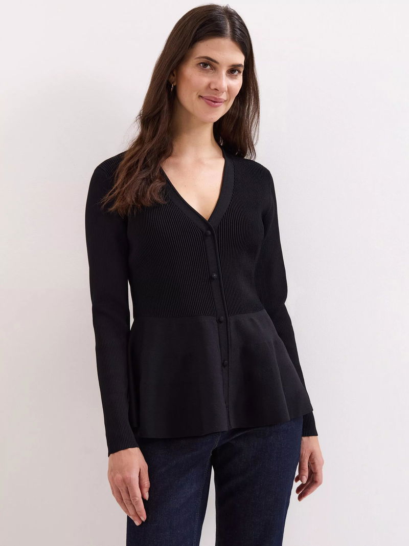 Roma Peplum Hem Cardigan, Black