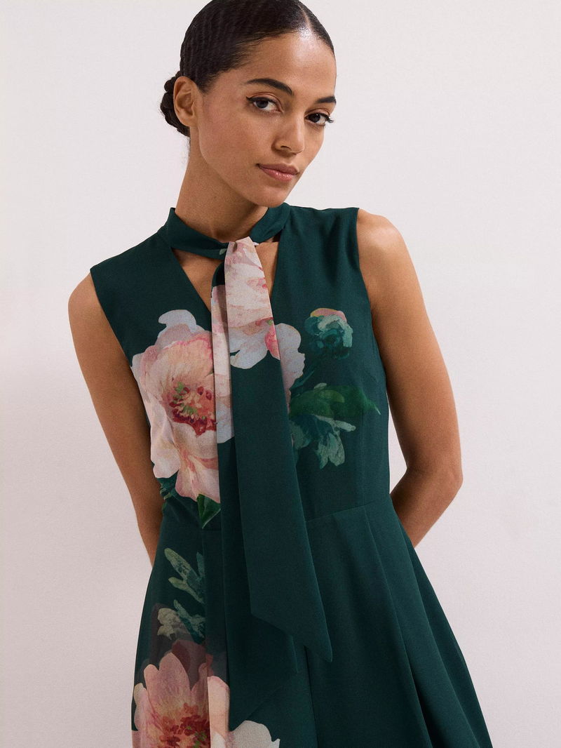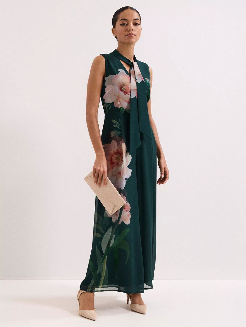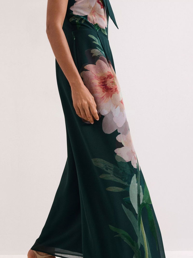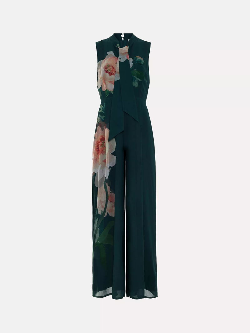 With a versatile, tie neck detail, this sleeveless jumpsuit from Phase Eight falls to a flattering wide leg silhouette and is made with durable fabric for longevity of wear. Blooming with florals, this jumpsuit was designed to impress on special occasions.
