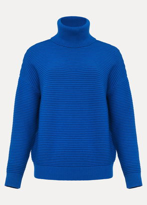 A must-have for your staple wardrobe. Our pale blue jumper is designed to a slim fit silhouette with a loose roll neck to keep you warm during the chilly months. We're wearing ours with leather-look trousers and boots for a stylish weekend look.