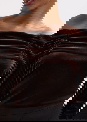 This top will pair with everything in your wardrobe. The slash neckline and subtle wave print adds a contemporary update whilst cropped blouson sleeves add a touch of sophistication. Perfect for everyday or an evening out, this top is a must-have in your wardrobe.