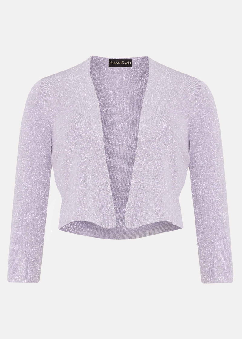 This cropped, knitted occasion jacket features an open front, pleats at the shoulder and 3/4 length sleeves. The modern, collarless design gives a structured finish and makes it perfect for any occasion dress.