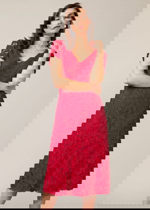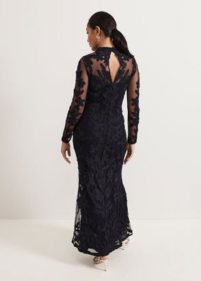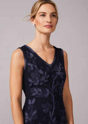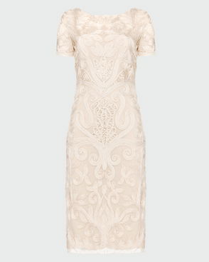 With Phase Eight signature lace tapework detailing throughout, this fitted dress is a stand-out style for special occasions. It is fully lined, and finished with a semi-sheer scallop hemline and short sleeves.