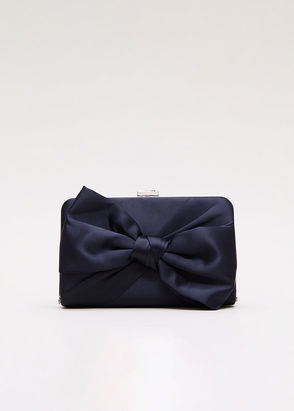 Designed in a luxe navy satin, this clutch bag will elevate all your event looks. The ruched shape allows the fabric to shine with every movement.