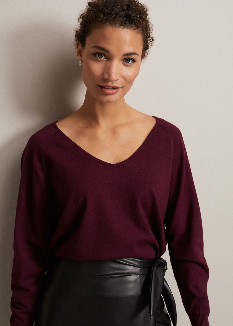 The perfect jumper to add to your staple wardrobe. Designed in a versatile burgundy shade and a super soft fabric, our Senita jumper features a feminine V-neckline and easy, relaxed fit. It's just the style you need to wear with all your separates.