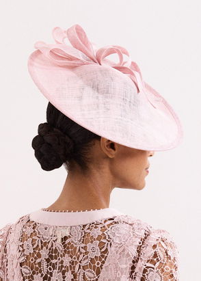 Add the perfect finishing touch to your occasion outfits. This elegant pale pink oval disc fascinator is finished with bow and twist detailing.