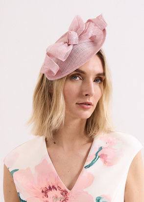 This large disc fascinator will ensure you make an entrance at all your biggest events. Created in 100% Abaca, it features an elaborate silk bow design on the crown and is set on a thin headband for effortless all-day wear.