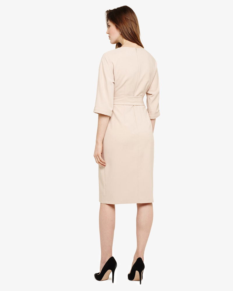This kimono-style dress has an obi-style wide belt for a modern silhouette that enhances the waist. Finished with wide sleeves and a round neckline, this versatile dress is effortlessly accessorised for evenings out.