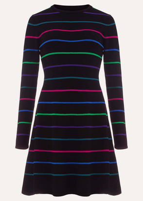 Who doesn't love a smart, versatile day dress? Our much-loved Sophie dress is patterned with failsafe stripes and accented with metallic buttons along the shoulder line. A great style to wear to the office.
