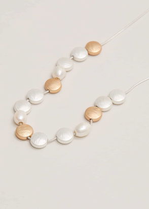 Designed with gold flat circle beads the necklace features a sparkle embellished disc to add a glamorous finish to any outfit.