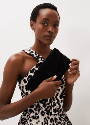 Crafted from suede, this statement blue clutch features stitch detailing and makes for the perfect accessory to all your event outfits.