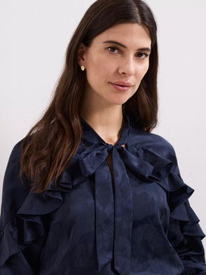 A stunning top to wear to all your special occasions. Designed in a blush pink shade, our Stacey blouse is designed with ruffled detailing and a semi-sheer neckline. We're wearing it with white trousers, a blazer and bold, metallic accessories.This style is responsibly sourced. This style has been made from recycled polyester, giving materials that would have ended up in landfill a new lease of life.