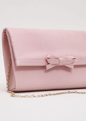 The perfect accessory for any occasion outfit. An elegant navy fold over clutch bag with a bow detail on the front. This bag is finished with an optional metallic chain strap and press stud fastening.