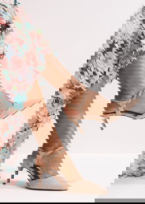 A perfect choice for weddings or special occasions. Designed with a soft suede finish, these pink heels feature a bow detail at the pointed toe and have a closed back.