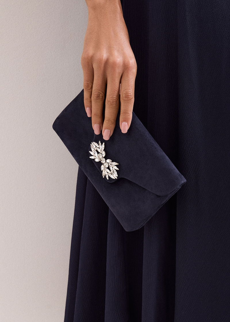 Suede Sparkle Clutch Bag
