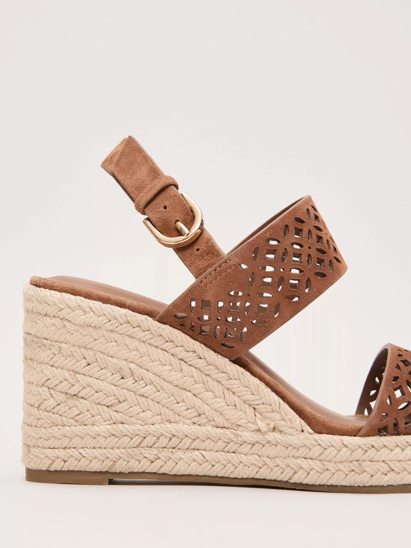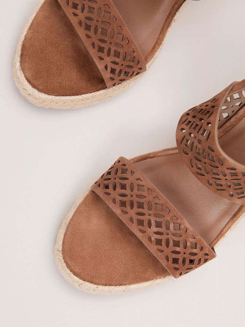 Suede heeled sandals from Phase Eight, featuring a comfortable 6cm wedge heel, leather lining, and easy buckle fastening.