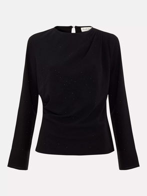With feminine draping at the V-neckline this top is perfect for both for both important days at work and drinks with friends.