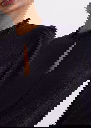 A fitted shimmer knit perfect for day-to-night dressing, with long sleeves and a round neckline.