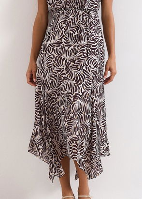 A contemporary asymmetric hem adds another element to this effortless occasion style.